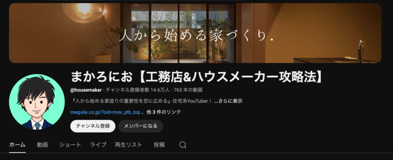 筆者自身も家づくりの情報収集でyoutubeを使う時によくこの方の動画を見ていました。